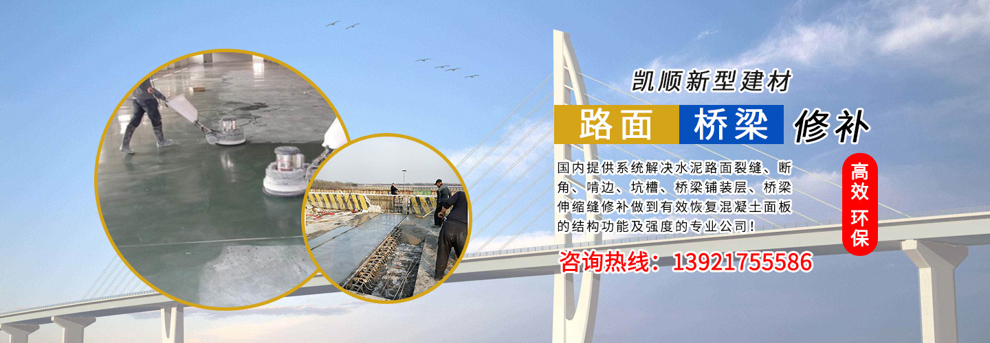 江蘇凱順新型建材有限公司是國內提供系統解決水泥路面裂縫、斷角、啃邊、坑槽、橋梁鋪裝層、橋梁伸縮縫修補做到有效恢復混凝土面板的結構功能及強度的專業(yè)公司!為市政工程、高速、國道、省道、縣鄉(xiāng)道路的改造及大修、中修等大型工程提供了快速、高效、環(huán)保、經濟系統方案和技術支持!